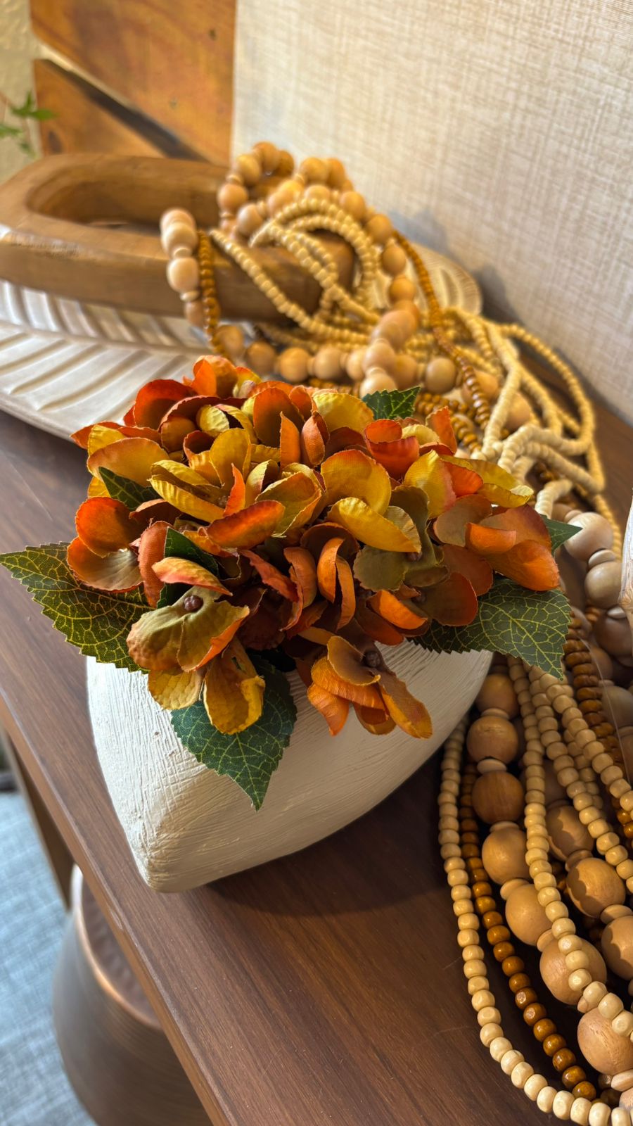 Arranjo Floral Decorativo com Hortênsias em Tons Outonais