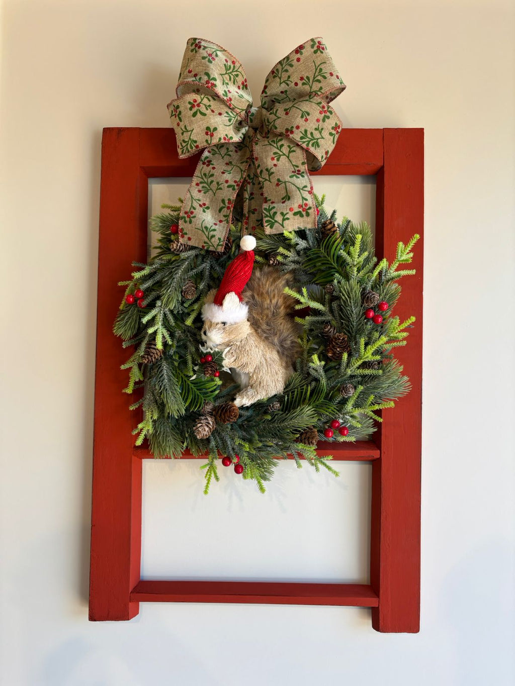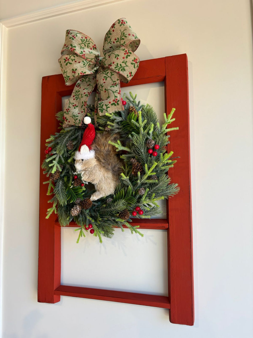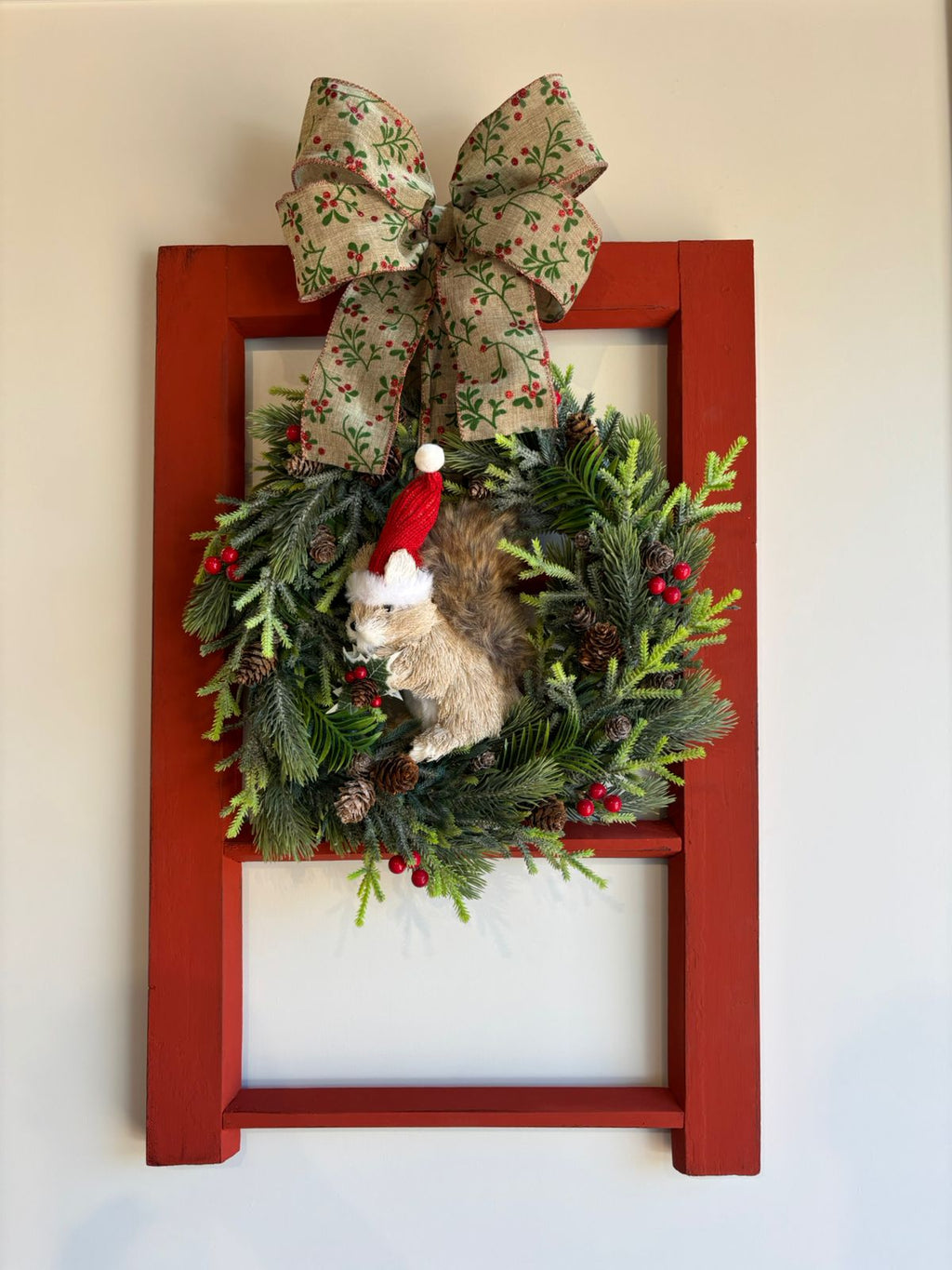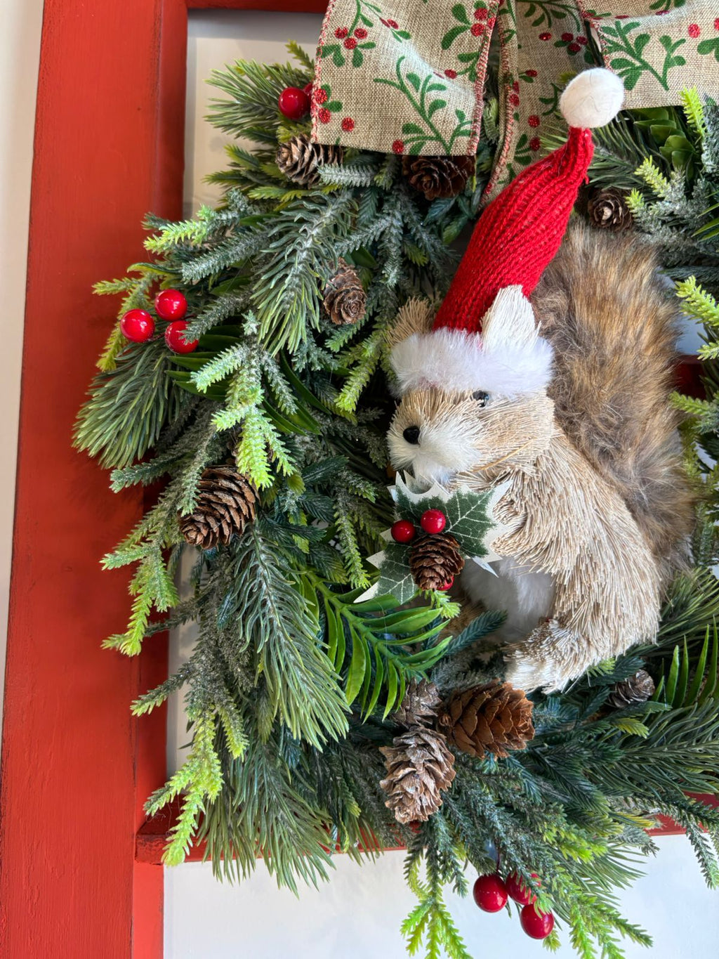 Esta janela estilo vintage traz um charme especial à decoração natalina, destacando-se pela delicada guirlanda que a envolve. O detalhe do pequeno esquilo adiciona um toque natural e acolhedor, ideal para criar um ambiente festivo e sofisticado. Perfeita para quem busca uma decoração clássica com detalhes exclusivos e elegantes.