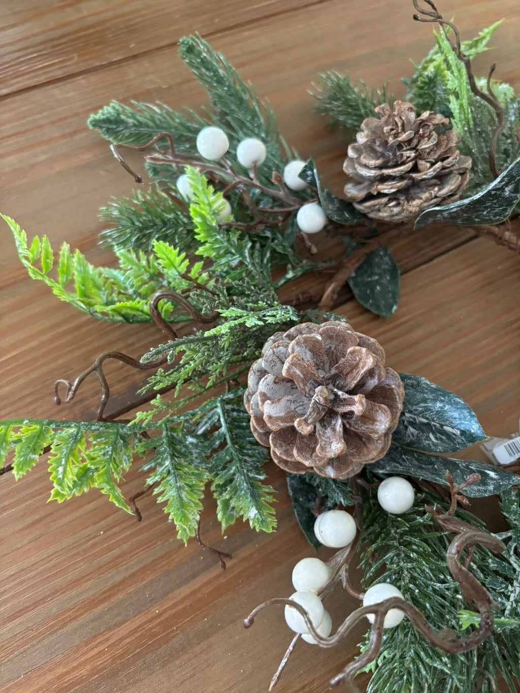 Guirlanda natalina rústica que combina elegância e autenticidade. Confeccionada com berrys brancos e pinhas naturais, esta peça traz a essência do Natal tradicional para sua decoração. Perfeita para envolver velas ou complementar castiçais, cria uma atmosfera aconchegante e sofisticada. Seu design compacto permite versatilidade de uso em mesas, aparadores e outros espaços. Ideal para quem busca detalhes decorativos que unem rusticidade e refinamento na composição natalina.